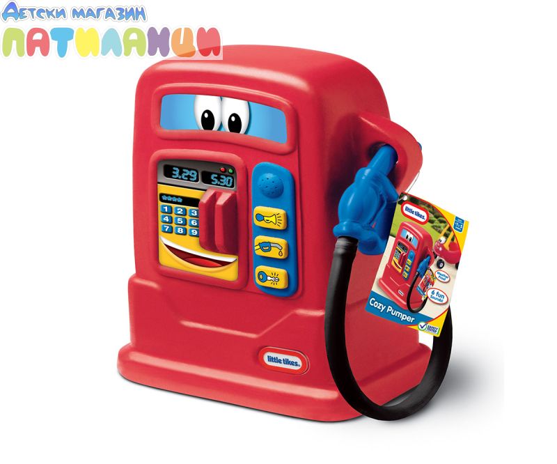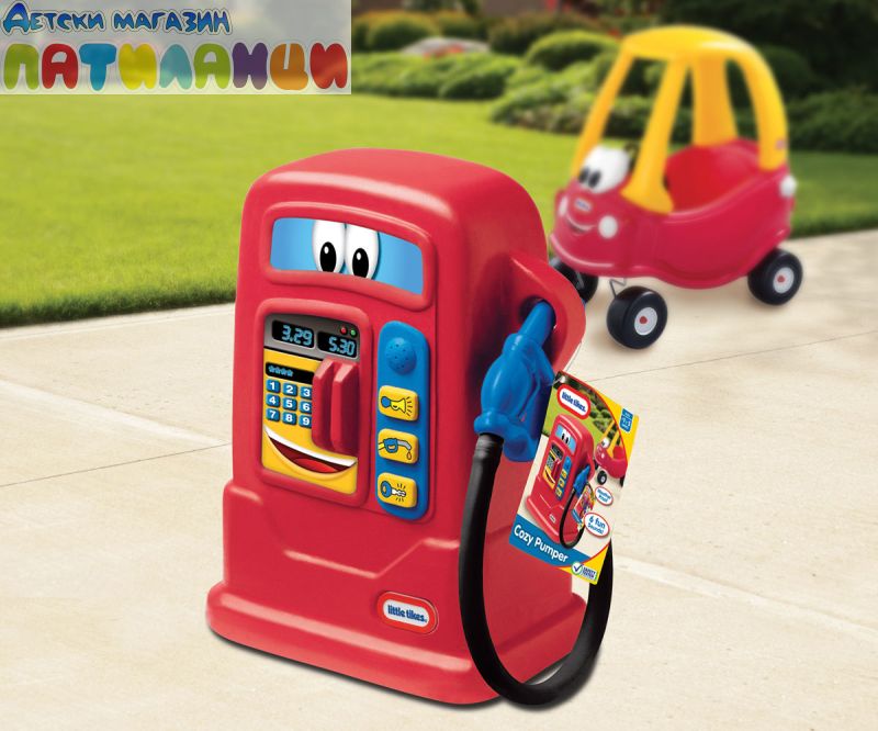 Литъл Тайкс (Little Tikes) Тази забавна бензинова колонка идеално пасва на вашата Little Tikes Cozy Coupe, Cozy Truck, Cozy Cab, Princess Coupe и много други. Децата ще се престорят, че спират и зареждат своята кола. С атмосфероустойчиви бутони и звуци, сложете я до вашата къщичка за да създадете свой собствен град. Може да се използва у дома или навън. Работи с батерии: 2 х АА, които не са включени в комплекта.