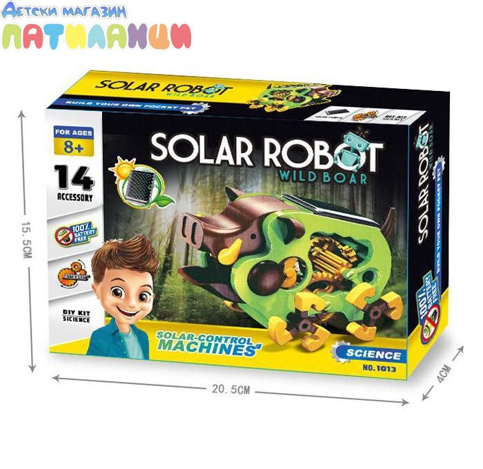 Това е играчка за конструиране, която включва соларен модул и не са необходими батерииза задвижването и.
