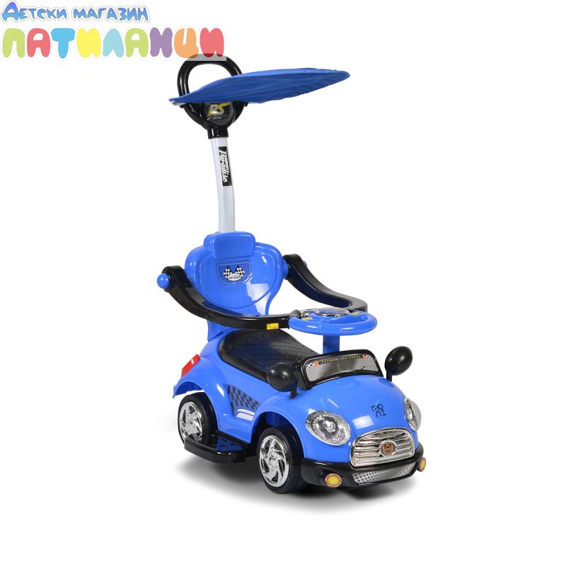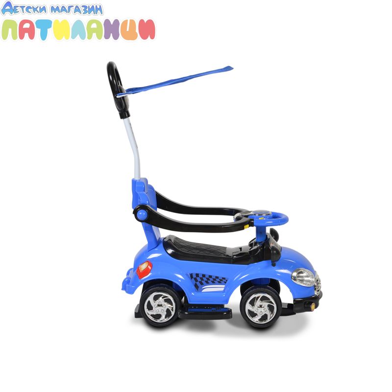 Кола за яздене и бутане с дръжка Paradise синя Moni