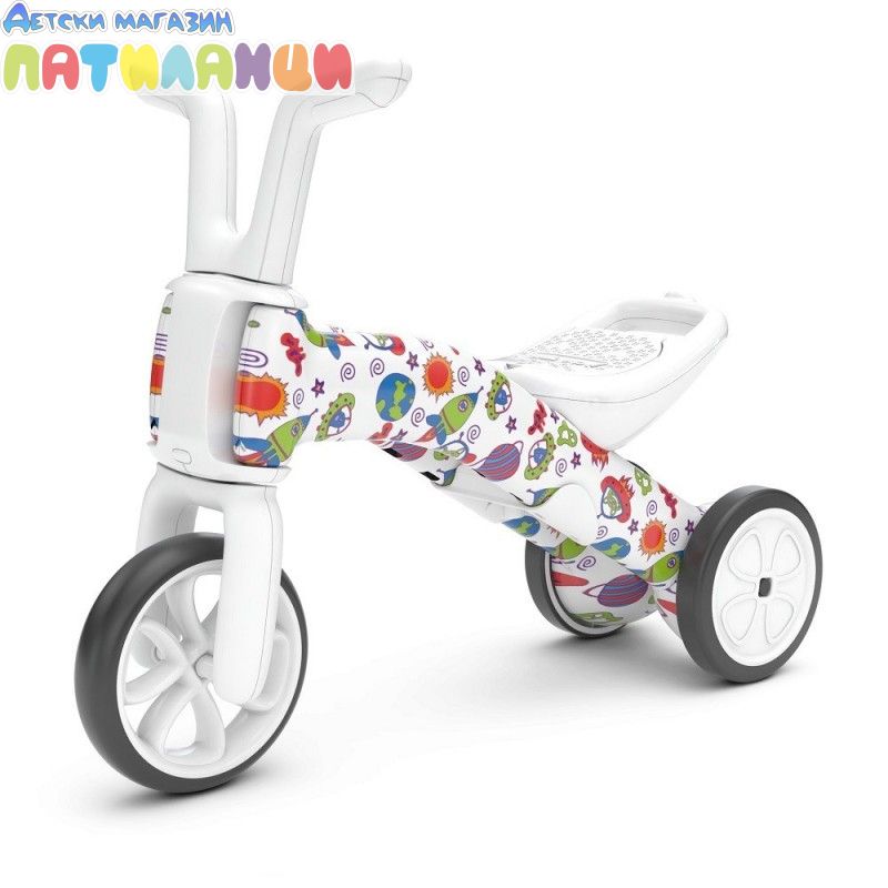 Ученето на чувството за баланс стъпка по стъпка е водещо при проектирането на това малко бижу на Chillafish. Bunzi е уникално колело за балансиране 2-в-1, която може да се превърне от режим на 3 колела и режим на 2 колела само за няколко секунди. Започнете в 3-колесен режим на възраст от една годинка и преминете в режим на 2 колела, само когато детето ви е напълно готово. Сменяйте между режимите толкова пъти, колкото искате. За удобство позицията на седалката в 3-колесен режим е ниско до земята, а в режим на 2 колела е по-висока, за да се постигне по-висока скорост. Bunzi е изключително леко и лесно за носене, а в седалката има и един хубав малък багажник за съхранение на любимите играчки или вкусни бисквитки. Рамката е изработена от висококачествен ABS материал, а гумите са