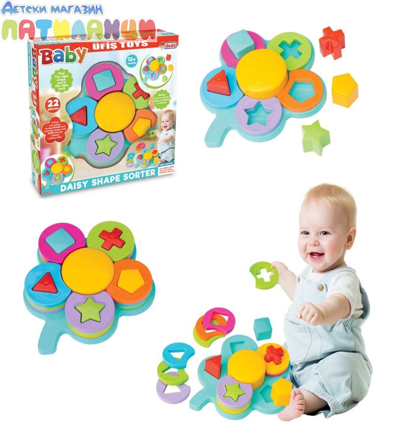 Образователна игра с лайка с живи цветове е подходяща за деца от 0 до 3 години.