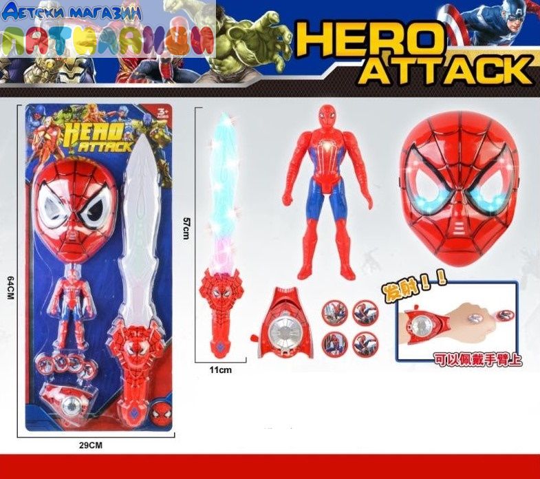 Комплект меч с изстрелвачка Hero Attack Spiderman