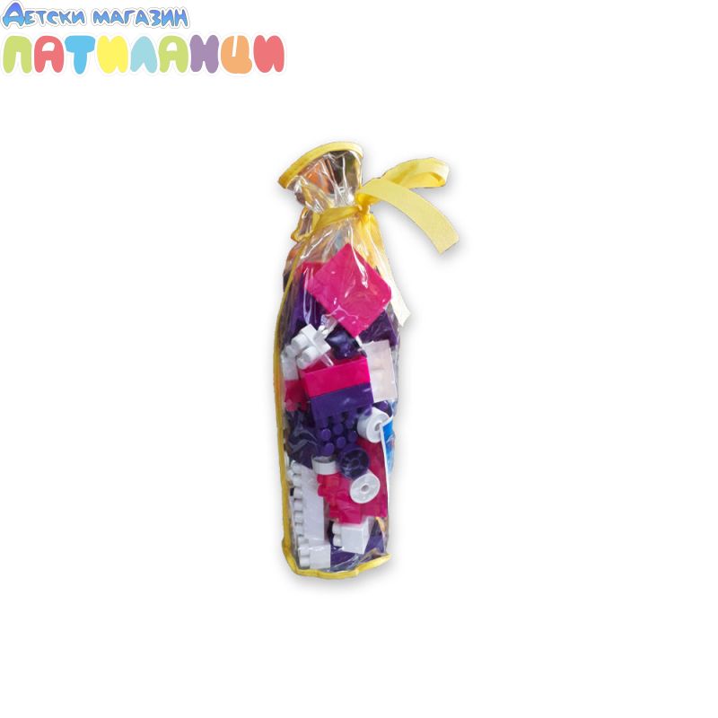 Частите на конструктора за момичета елементите са в розово, бяло и лилаво.