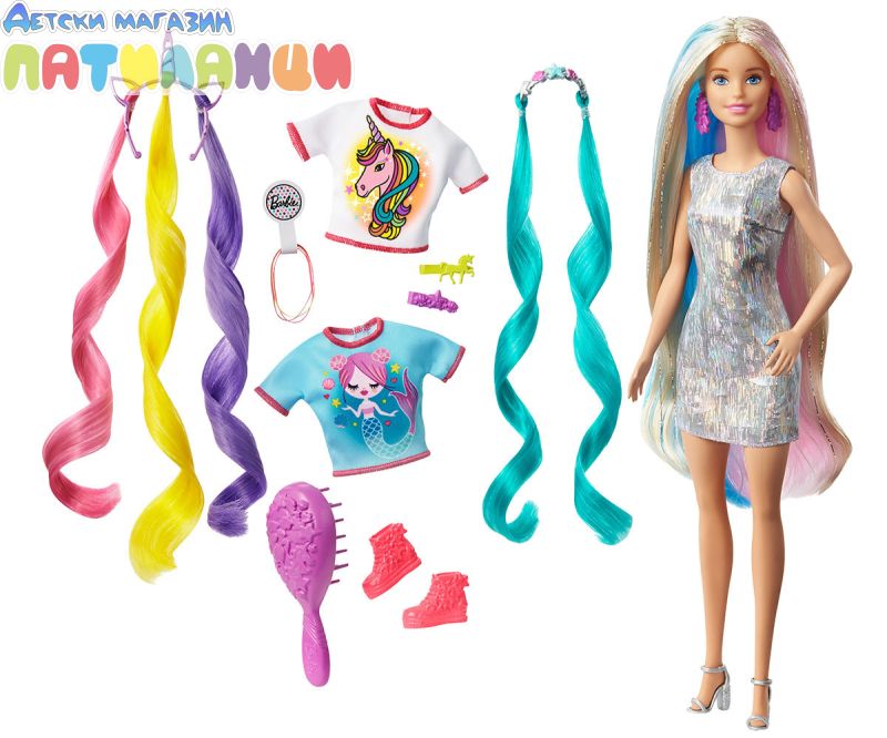 Тези кукли Barbie® имат цветни блестящи коси, които могат да станат още по-фантастични!