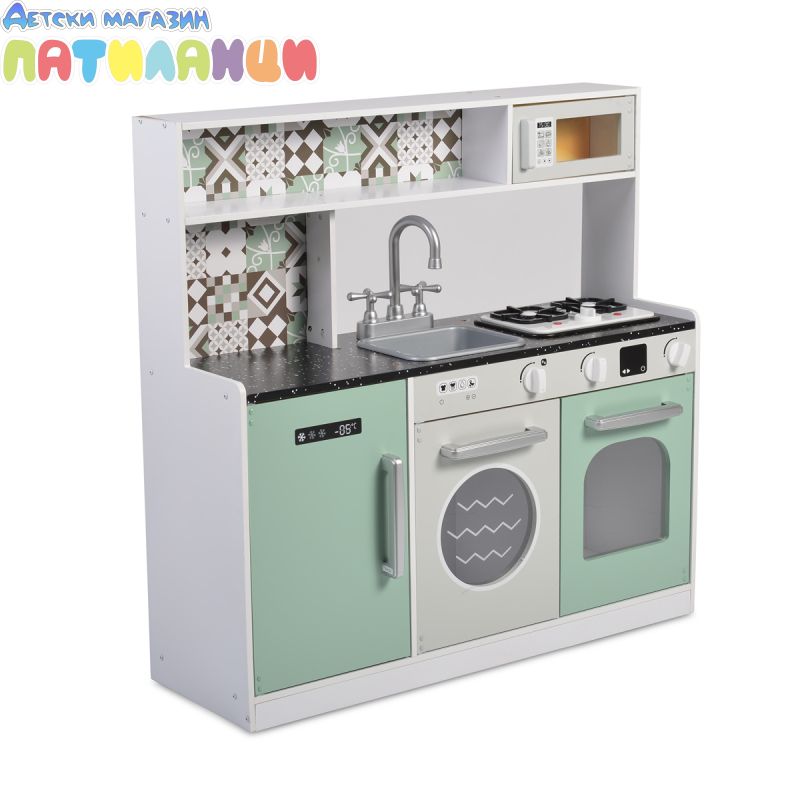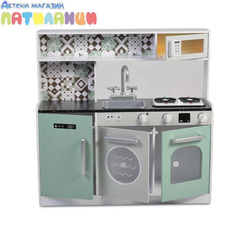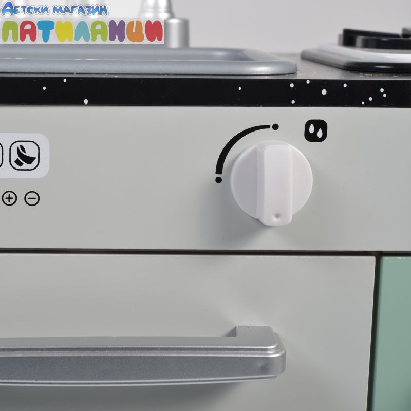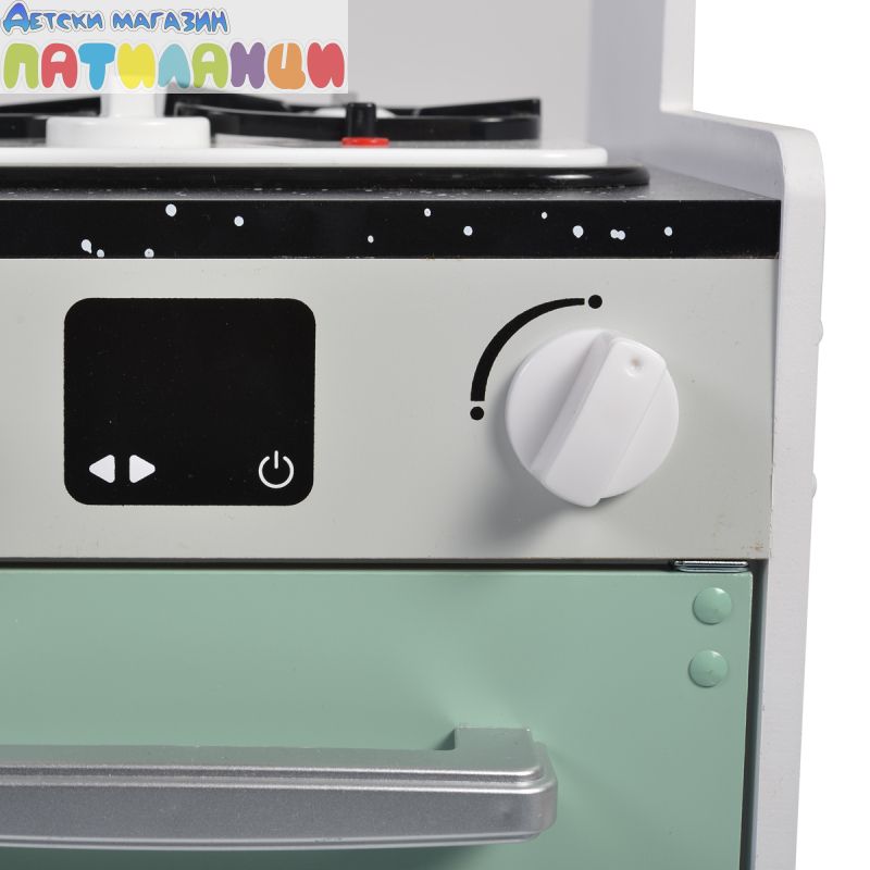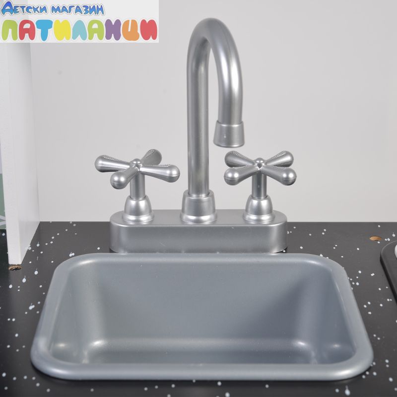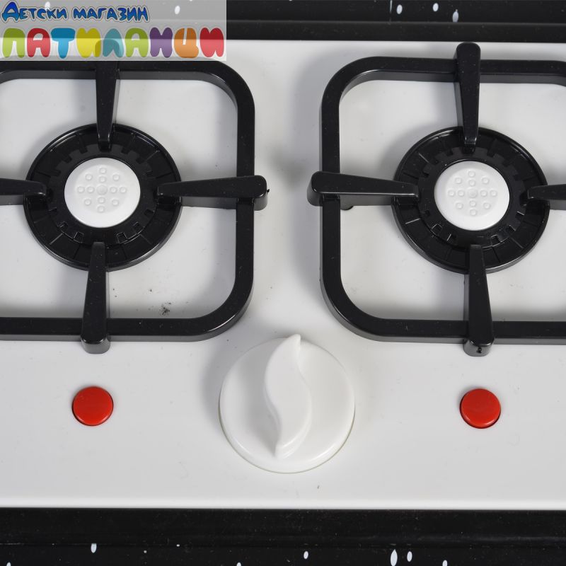 Фурна с отваряща се магнитна врата, мивка и два котлона.
