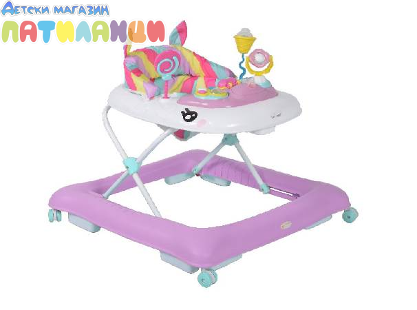 Регулиране на височината в 3 позиции; Свалящо се музикално табло с 12 мелодии; Светлинни ефекти, привлищачи вниманието на детето; 2 предни колела , въртящи се на 360 градуса; 2 задни силиконови колела с праволинейно движение; 6 силиконови стопера за под основата, за по-голяма сигурност; Мека седалка с висока облегалка; Висококачествен пластмасов материал;
