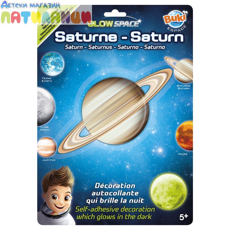 - Космос – Фосфоресцираща планета – Сатурн залепете ги на стената или на тавана, загасете лампите и вижте как светят в тъмното!
