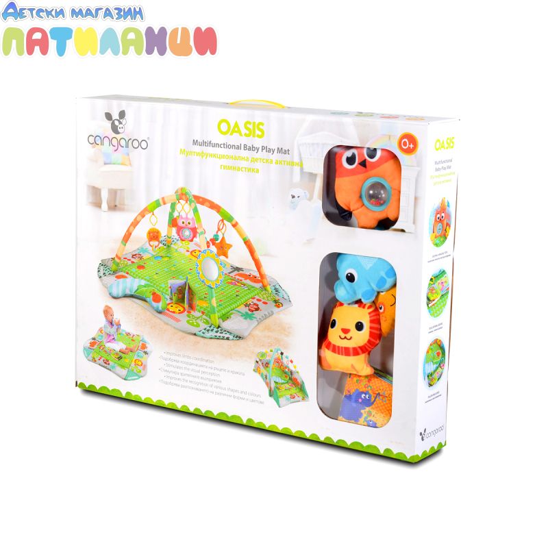 Вашето бебе ще заобича това страхотно, меко и привлекателно място за игра. Активната гимнастика Oasis ще забавлява малчугана и в същото време ще насърчи нови умения, като хващане, стимулиране на сетивата и разпознаване на различни звуци.
