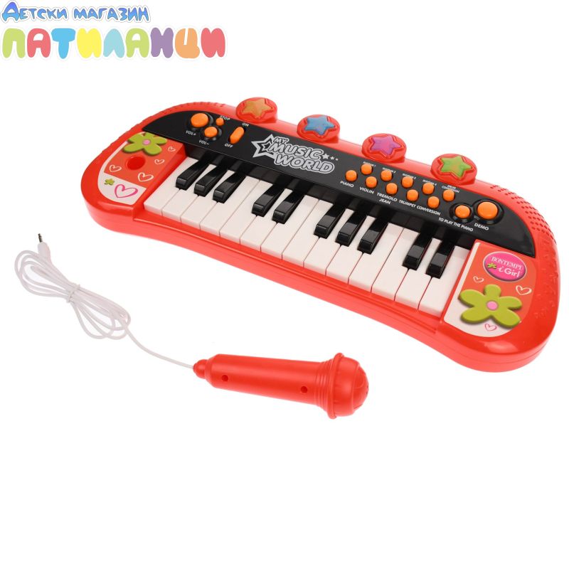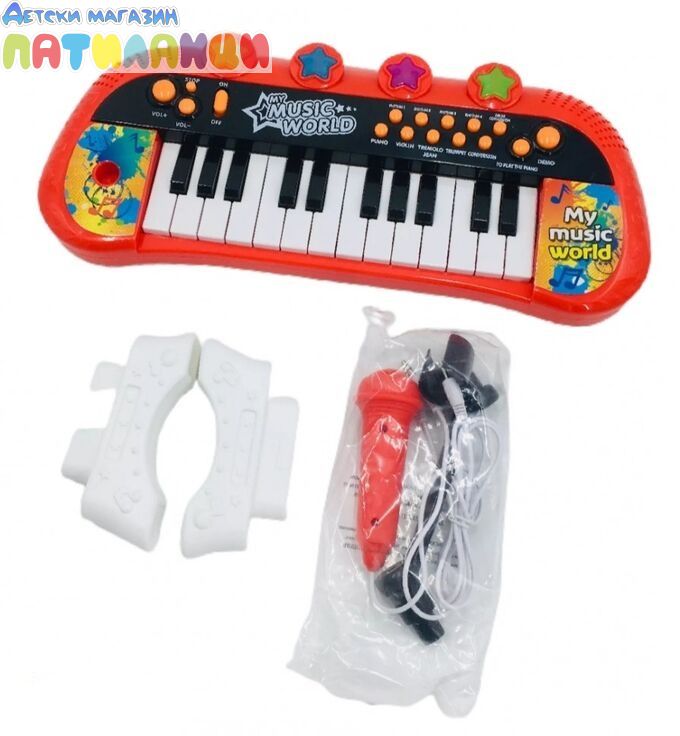 Електрически орган с микрофон, 24 клавиша, с дължина 36 см и ширина 16 см.