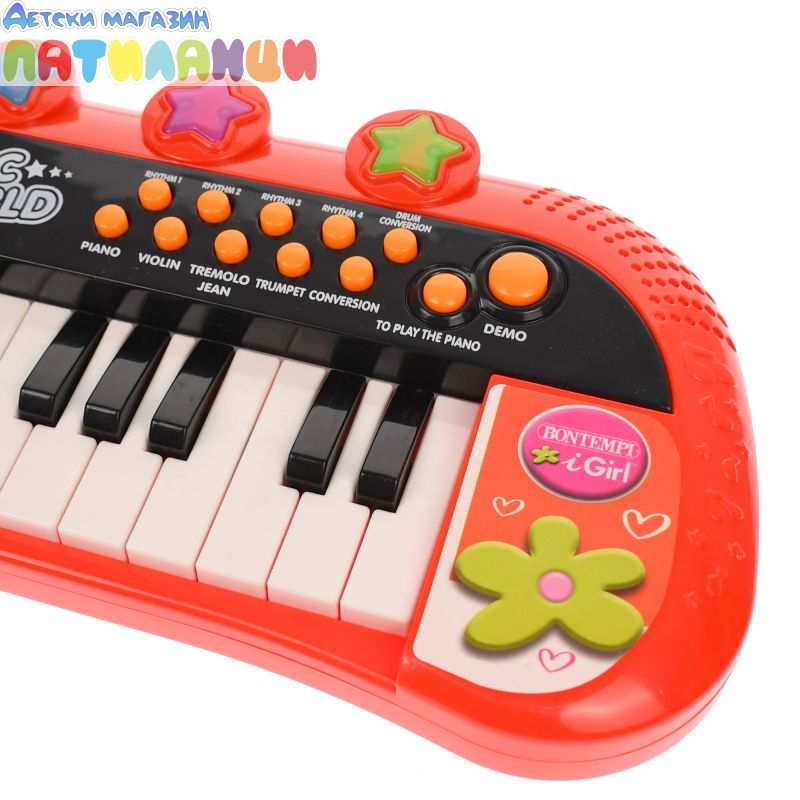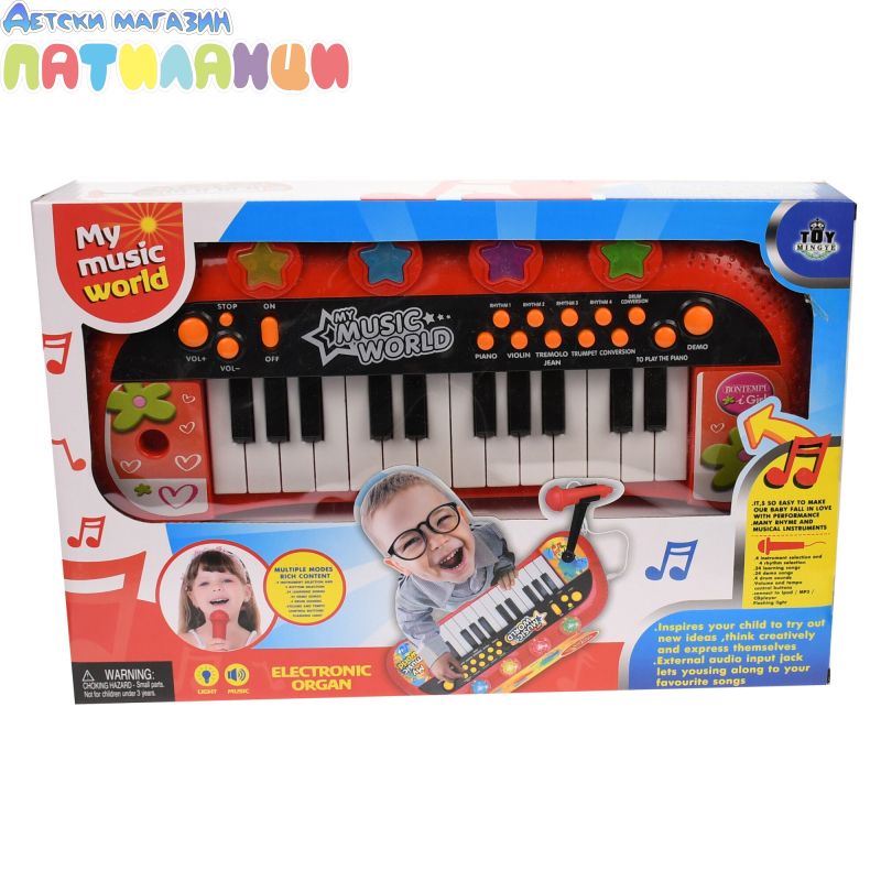 Електронният орган е многофункционален инструмент, чийто модерен дизайн и изключителни звуци ще насърчат всеки да свири. Този орган с микрофон ще създаде страст към музиката на младите хора. Детският орган се захранва от мрежовия адаптер (включен в комплекта) или батериите, което ви позволява да вземете органа със себе си навсякъде.