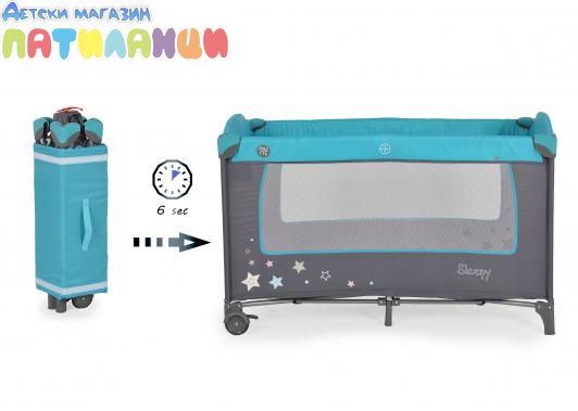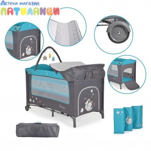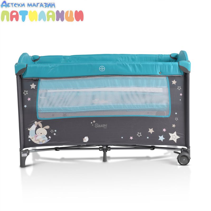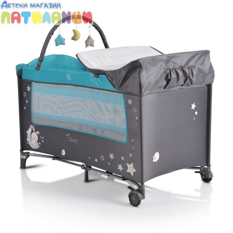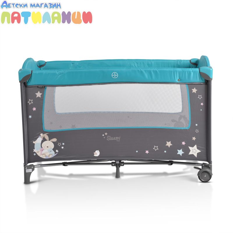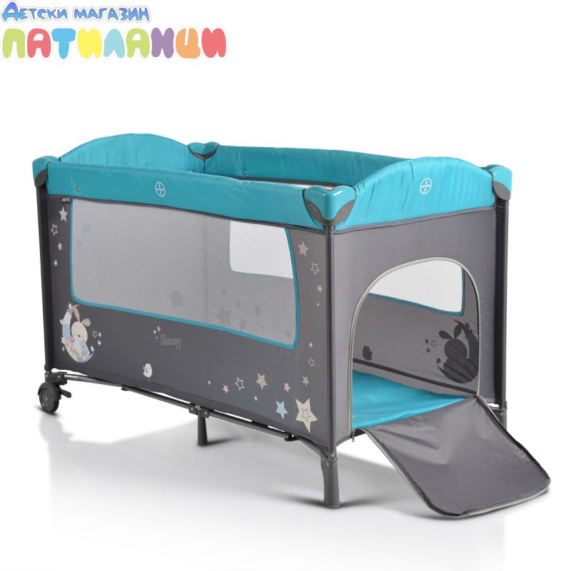 Детска кошара 2 нива МОНИ SLEEPY тюркоаз Детска сгъваема кошарa