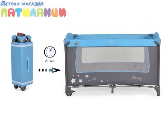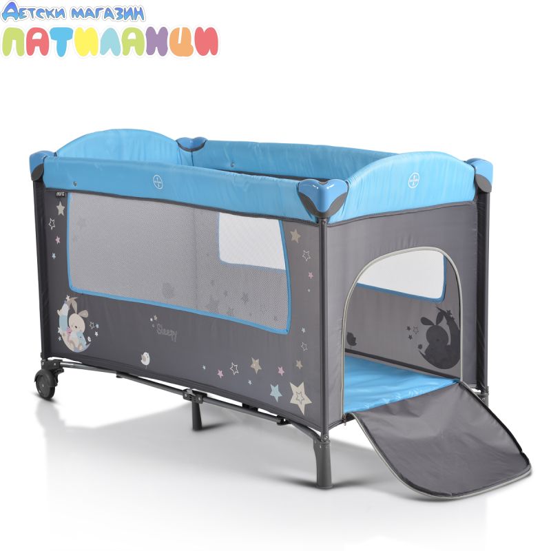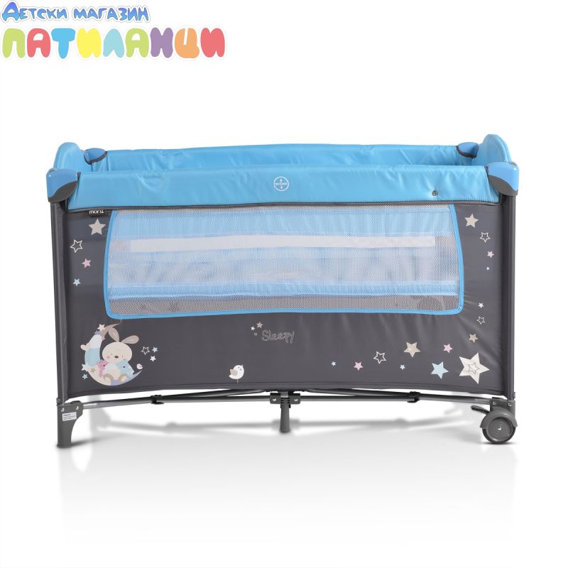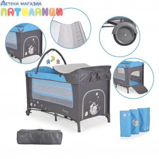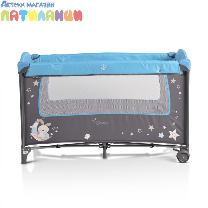 Детска кошара 2 нива МОНИ SLEEPY син Детска сгъваема кошарa