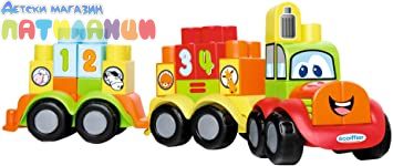 Цветен влак с големи блокове, които могат лесно да се регулират и разглобяват.