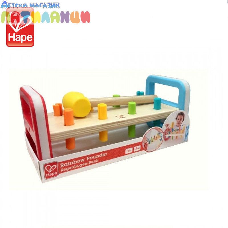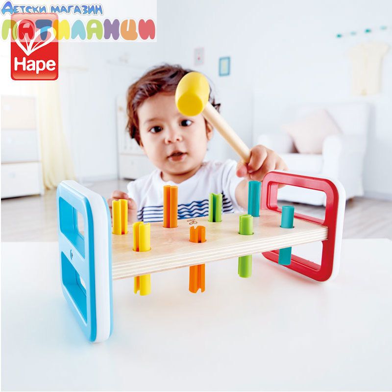 Дървената игра с чукче ще научи децата да броят и да разпознават цветовете, докато развива фината им моторика, координацията и концентрацията.