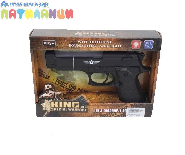 Музикален пистолет "Супер пистолет". Захранва се от батерии.