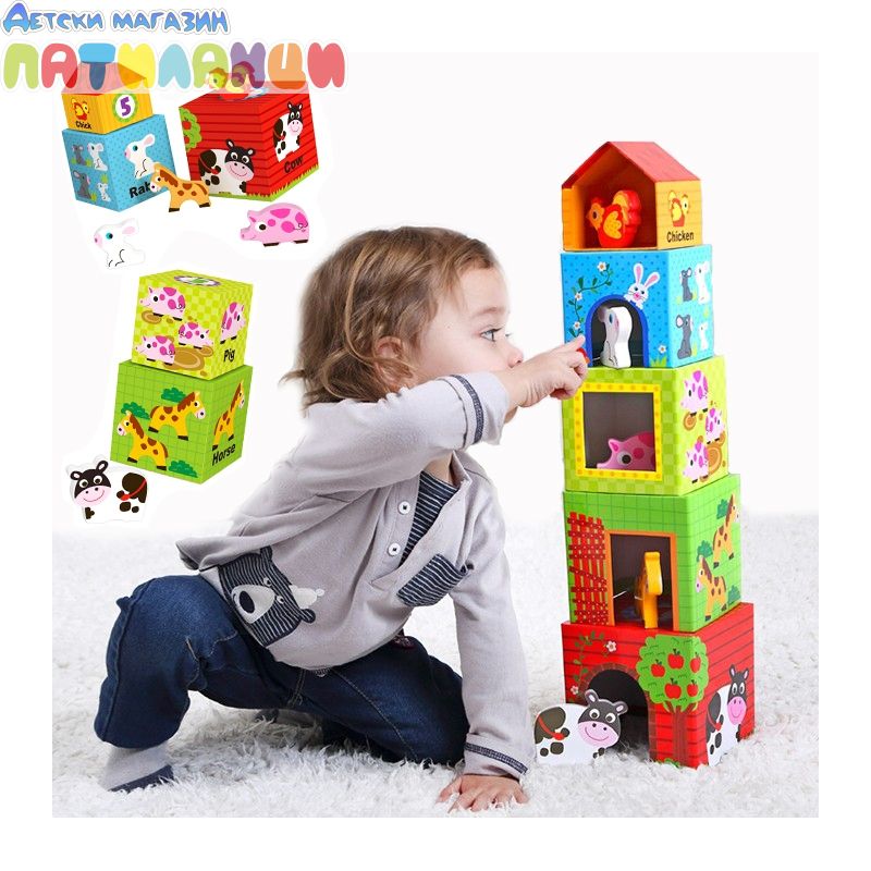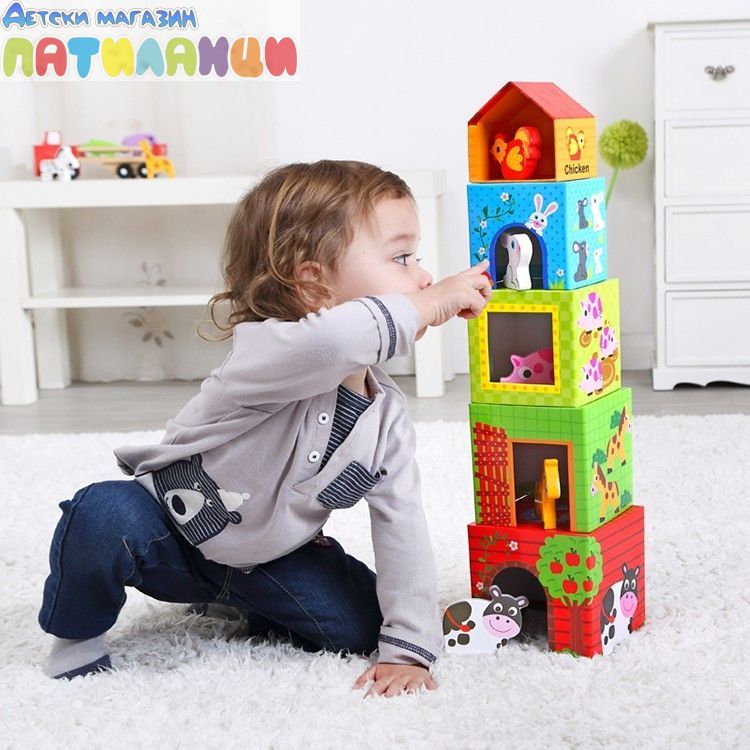 Подредете цветните кутии по големина и приберете всяко животно в предназначената за него кутия.