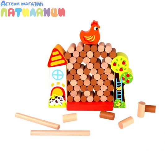 Jenga е лесна игра, която можете да играете по всяко време, навсякъде сами или с приятели. Просто издърпайте долния прът, подредете горната част на пръчката и гледайте как останалата част се придвижва на мястото си или ако сте много внимателни, тя ще остане на мястото си. Това не е традиционната игра на Jenga, при която се преобръща, когато бъде избрана грешната пръчка. Този пакет има хубава дървена рамка за ферма, която държи всичко заедно. Целта на играта е да се опитате да балансирате пилето отгоре. Забавна и интерактивна игра.