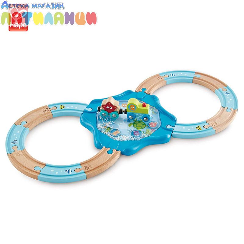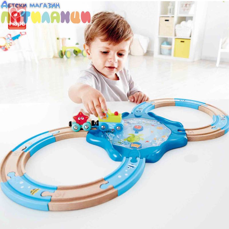 Знаете ли, че влакчето може да премине през водата на морета и океани? Дали това наистина е възможно? С пистата осморка на Hape това е напълно възможно.