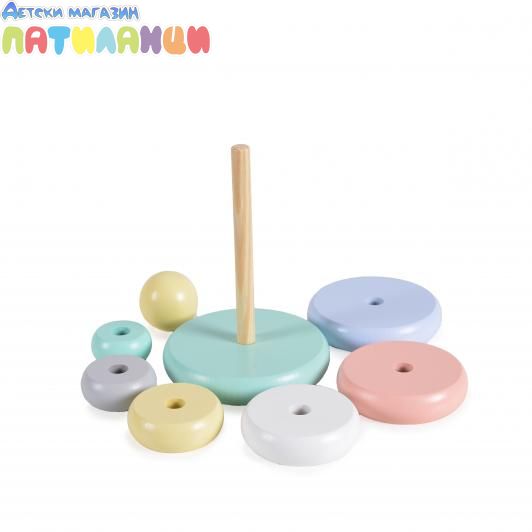 Играчката осигурява на децата истинска забава, докато подреждат пръстените.
