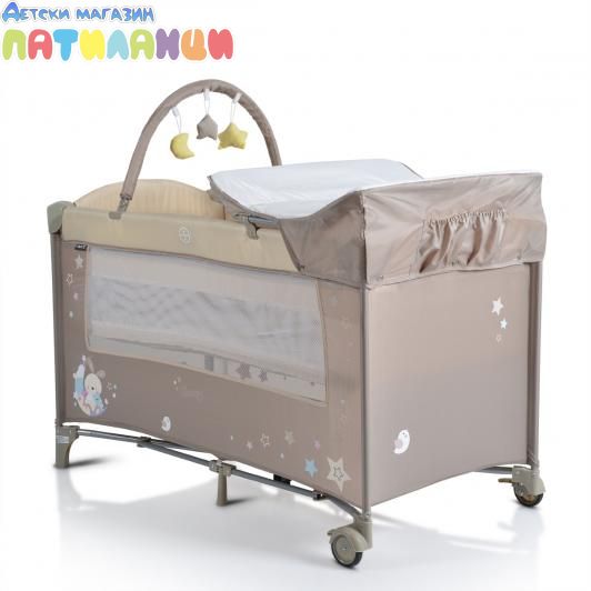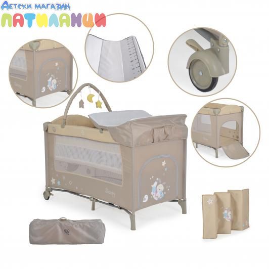 Детска кошара 2 нива МОНИ SLEEPY, БЕЖОВА Детска сгъваема кошарa