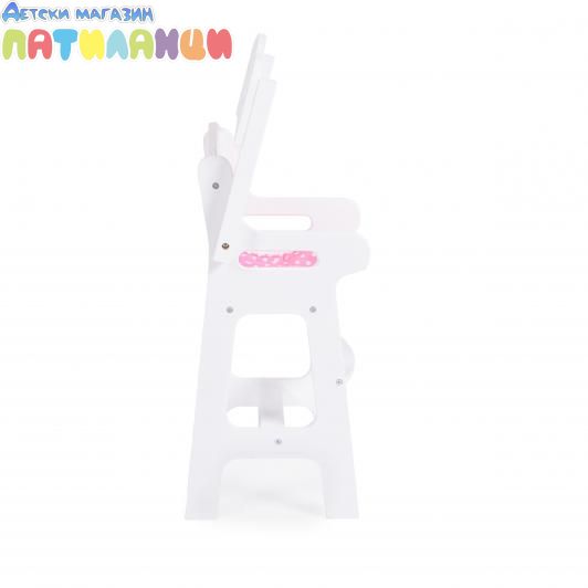 Вече малката мама няма да се притеснява за своите кукли, те ще са удобно настанени при хранене, за да се чувстват възможно най-добре и да си изяждат всичко, за да пораснат големи. Лек и компактен, този стол е чудесно допълнение към интериора на детската стая.