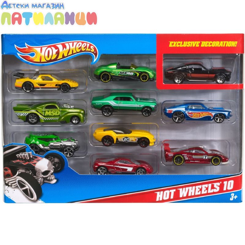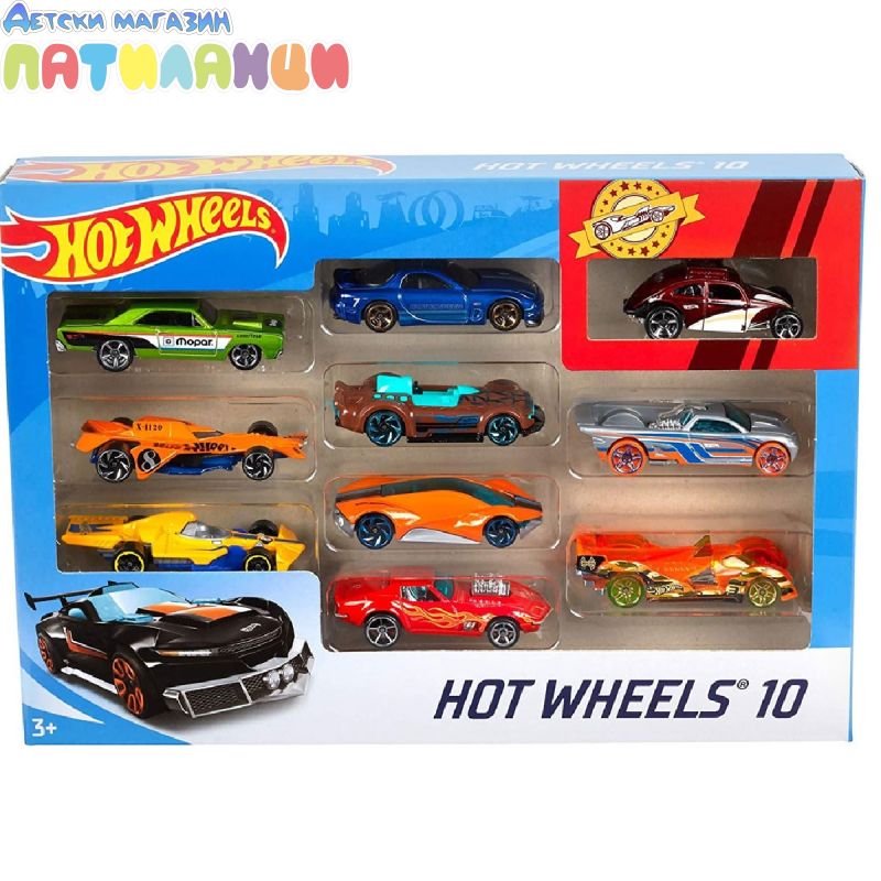 Hot Wheels - Комплект 10 броя метални колички 1:64, асортимент