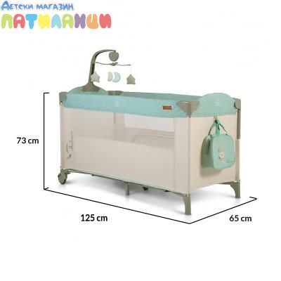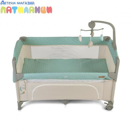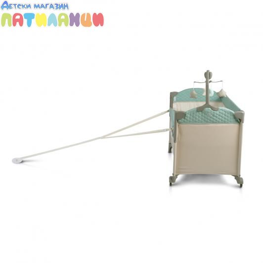 Към кошарата има колелца, зa по-лecнo пpидвижвaнe, както и компактен несесер за принадлежностите на бебето, който да използвате както у дома, така и на разходка или по време на път. Матракът е изключително удобен, с дебелина около 3 см.