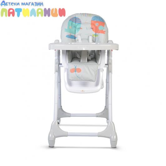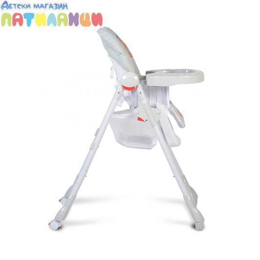 За максимално удобство и комфорт по време на хранен, столът има 5 степени за регулиране височината на седалката.Към двойната табла за хранене има поставка за шише или чаша. Горната й част се сваля и почиства без да има нужда да се откача основата на таблата;