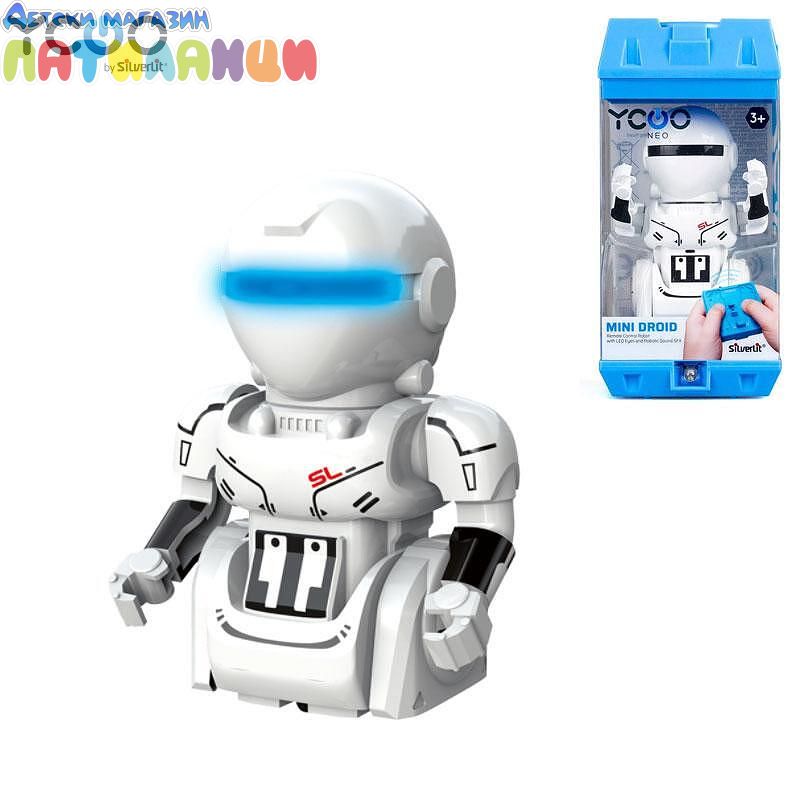 Вижте този електронен робот Silverlit Ycoo neo мини дроид, той е робот с дистанционно управление с размер на дланта с LED очи и работещ звук SFX! Възраст: 3 години и повече.