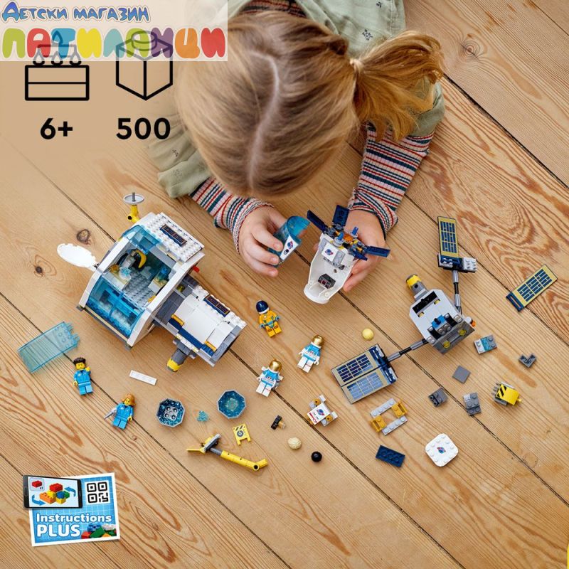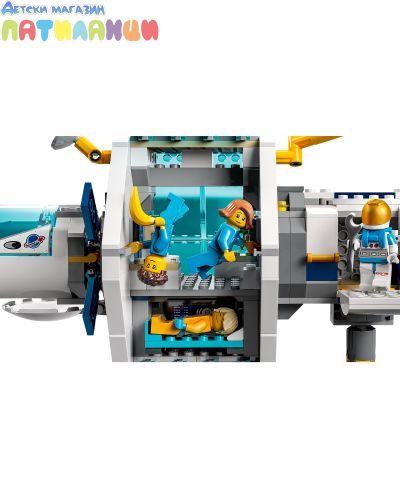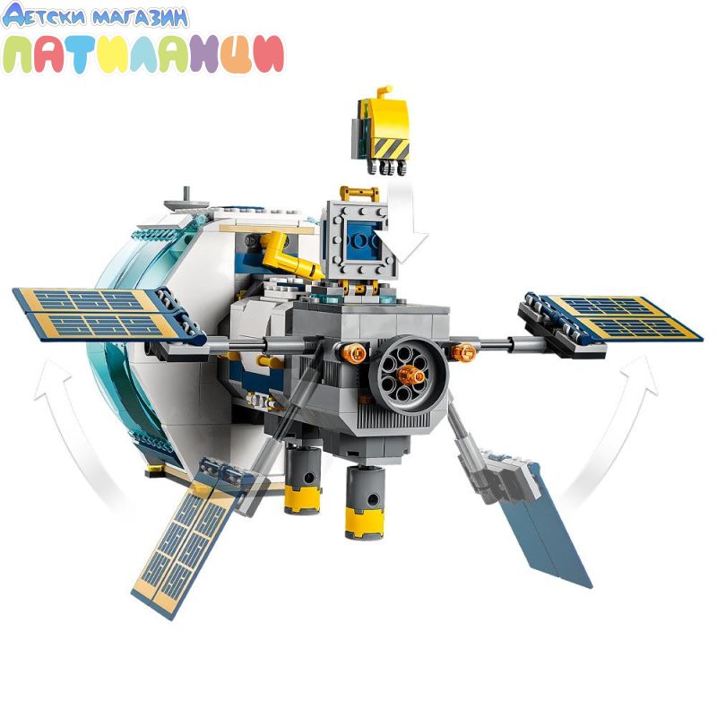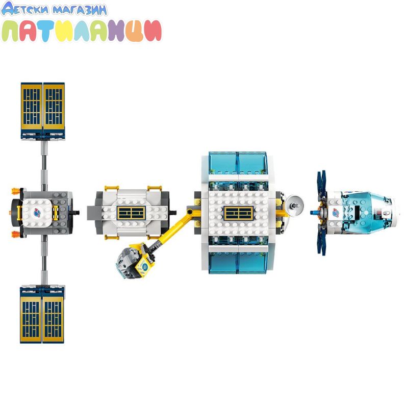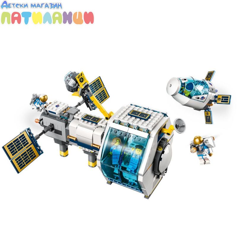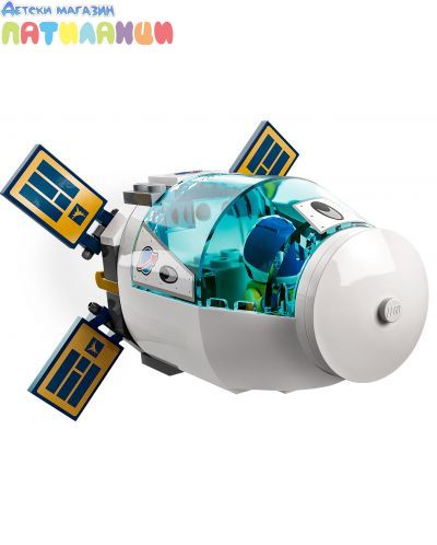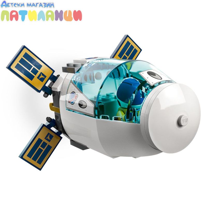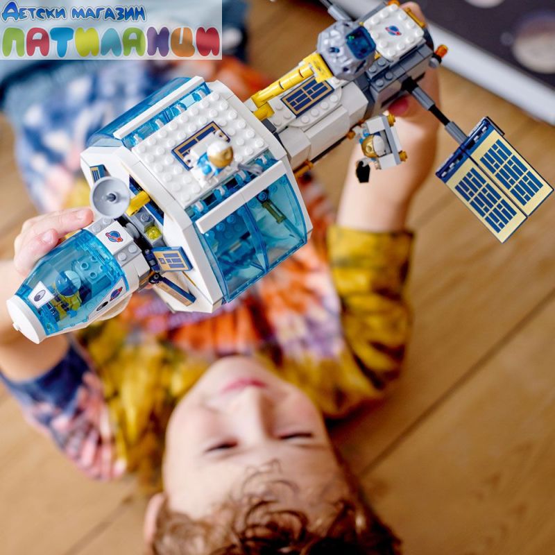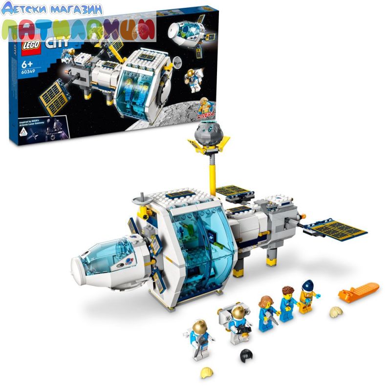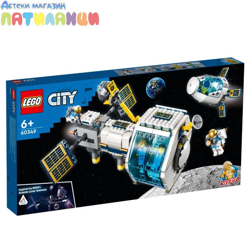 Този комплект LEGO® City Лунна космическа станция (60349) ще изстреля в орбита творческите игри. Вдъхновен от NASA, той има множество реалистични функции за забавни игри, включително научна и ботаническа лаборатория и космическа капсула за скачване, плюс 5 минифигури на астронавти. Комбинирайте този комплект с други от космическата гама на LEGO City за още по-вълнуващи приключения в космоса. Конструиране за деца над 6 години Този комплект за конструиране LEGO съдържа подробно печатно ръководство и интерактивни цифрови инструкции за сглобяване. В безплатното приложение на LEGO с инструкции за сглобяване, налично за смартфони и таблети, има цифрово ръководство с интуитивни инструменти за мащабиране и завъртане, с които децата могат да визуализират всеки модел от всички ъгли, докато строят. Комплекти за извънземни игри Комплектите LEGO City с космическа тематика съдържат многофункционални модели, вдъхновени от реални машини, превозни средства и космически кораби на NASA, както и фигури на астронавти, които разпалват детското въображение за игри, базирани на космически мисии от реалния живот.
