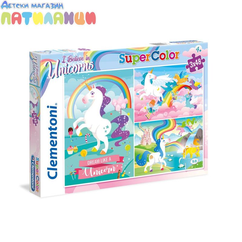 Детски пъзел I BELIEVE IN UNICORNS 3x48ч. CLEMENTONI 25231