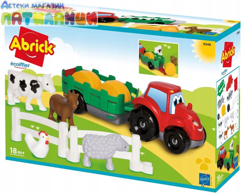 Фермерски трактор с ремарке и животни Ecoiffier Abrick 3348