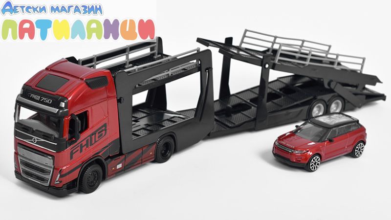 Метален камион автовоз Volvo FH16 GL 750 XXL с Land Rover LRX Bburago 1/43