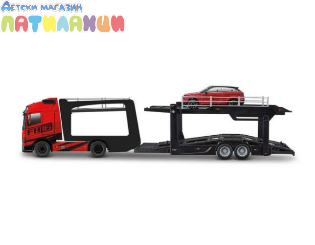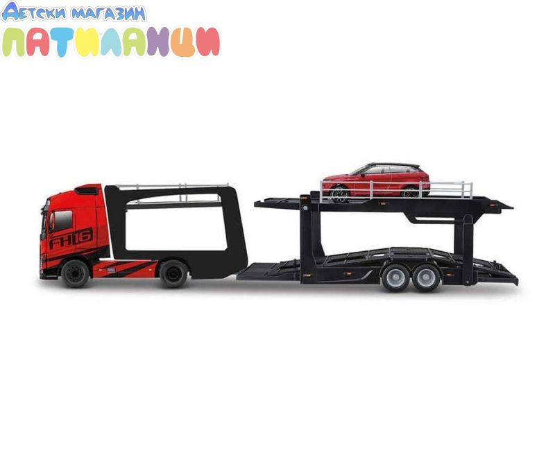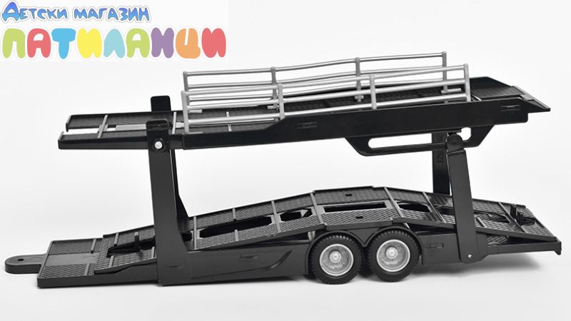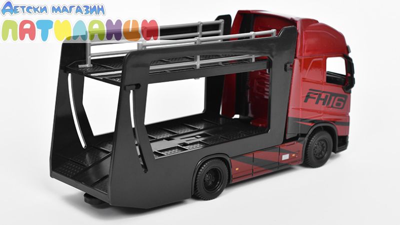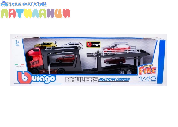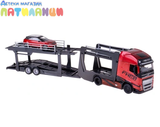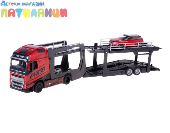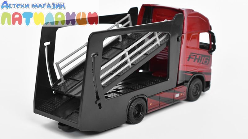 Прилича на автовозите на магистралата, които блокират слънцето, докато преминават. С автентични детайли, в кабината и извън нея! Идва с една количка Bburago - количката на снимката може да се различава с количката в комплекта.