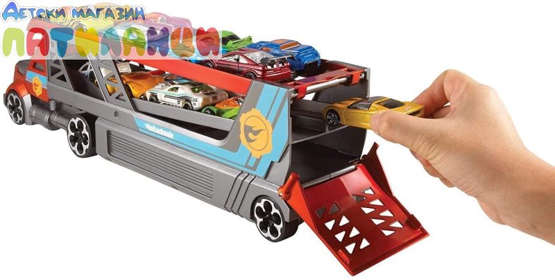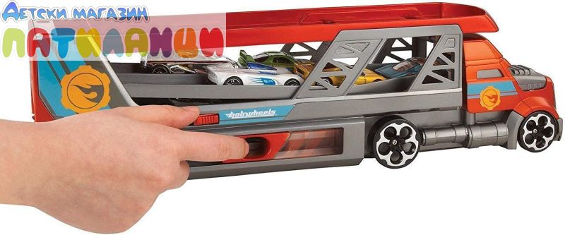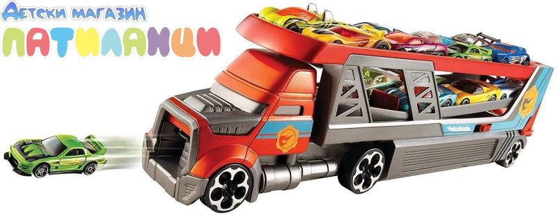 Автовозът Hot Wheels е страхотна играчка за всички момчета. Той може да побере повече от 14 колички. Но това не е всичко... Новия дизайн и специалните му функции са впечатляващи. Натовари количките на автовоза и с едно движение ги изстреляй през кабината. Забавно е нали ?.. Комплектът включва 1 автовоз и 3 колички Размер: 50,8 x 8,9 x 12,7 см Играчка за момчета над 3 години