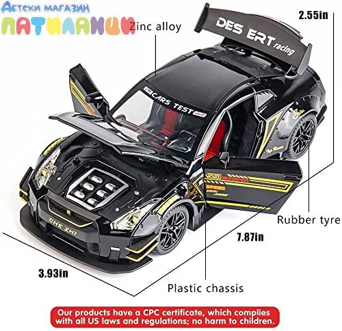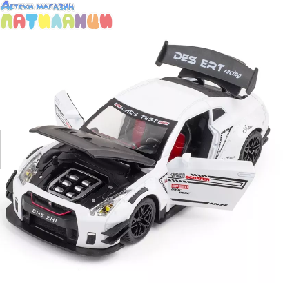 Метален автомобил със звук и светлини Nissan GT-R Nismo 1/24, БЯЛ Характеристика:
