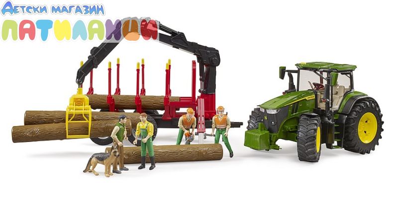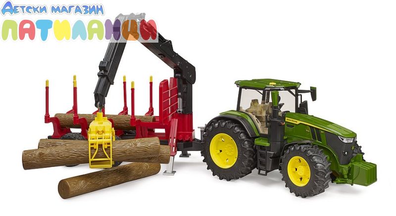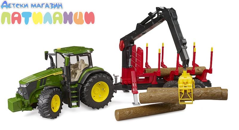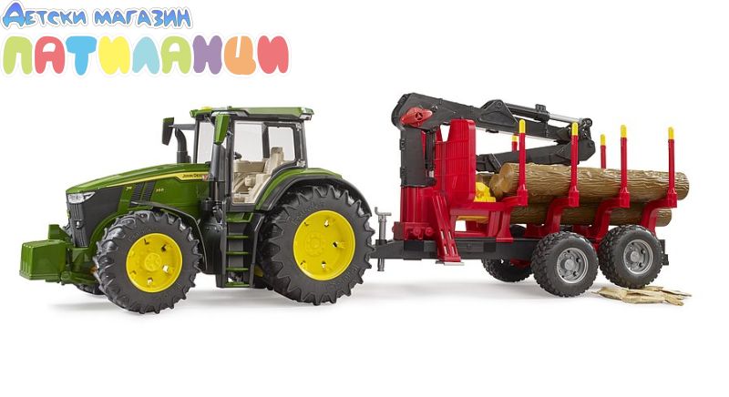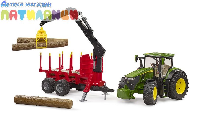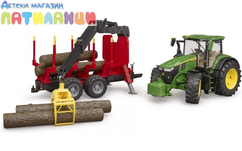 Трактор John Deere 7R 350 с ремарке за дървен материал BRUDER 03154