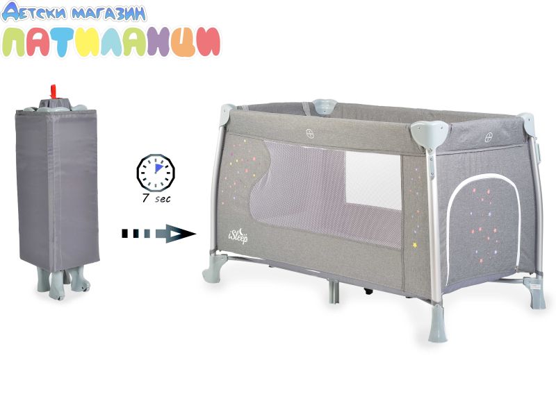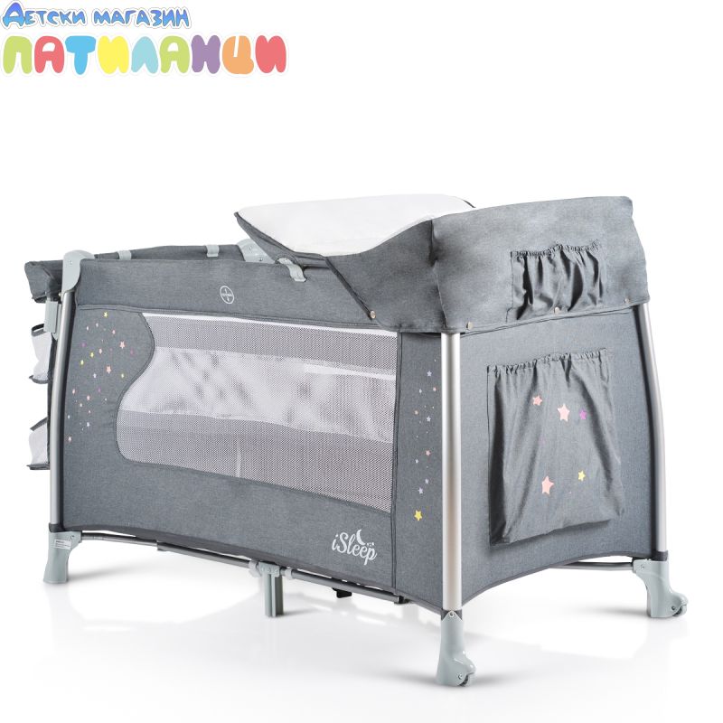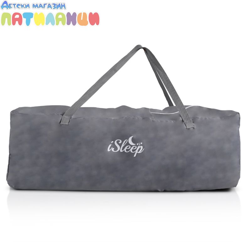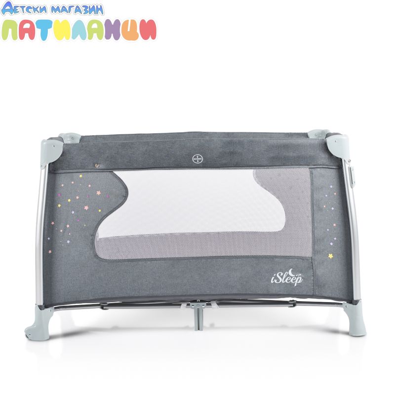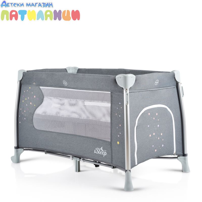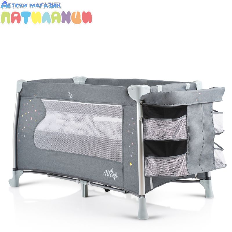 Кошарата ISleep разполага със странични джобове за играчки и аксесоари, както и със сенник с предпазваща мрежа против насекоми. За да може бебетата да се забавляват от сърце, към сенника има закачени 3 играчки.Кошарата е с люлеещ се механизъм и поддържа максимално тегло от 14 килограма.