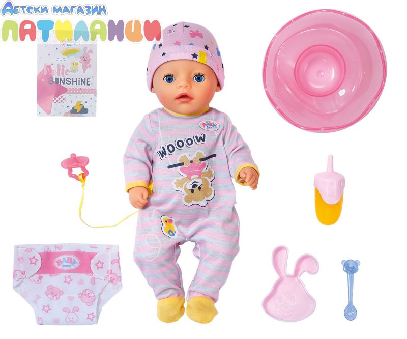 Baby Born може да пие, да му сменяте памперса, да плаче, да ходи на гърне, да се къпе и да спи. Освен това е супер гъвкаво и затова е много лесно за игра. Всички функции могат да се изпълняват без батерии. Включени много аксесоари: аксесоарите, от които се нуждае, за да поддържа функциите. Идеален за малки деца: ръцете, краката и главата са супер гъвкави.
