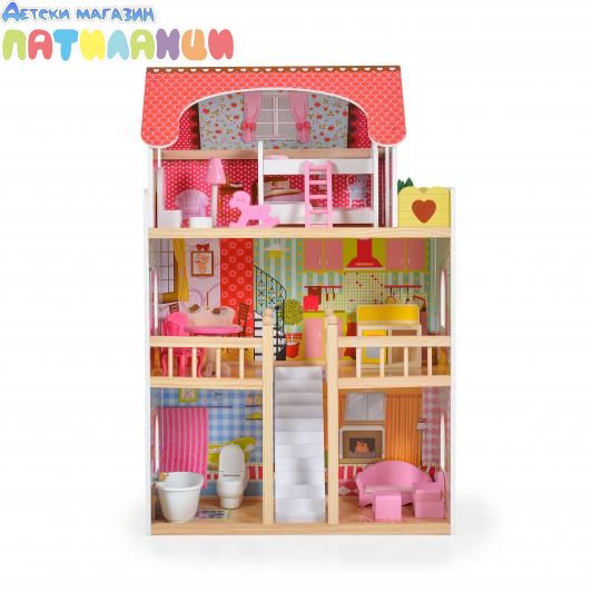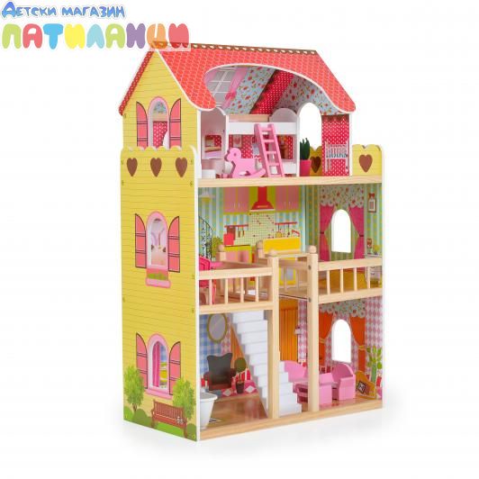 Дървена къща за кукли с обзавеждане EMILY Moni Toys 8209