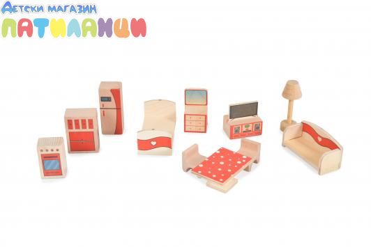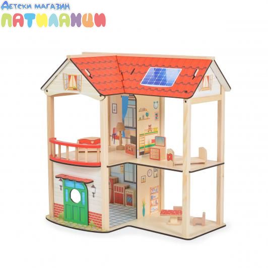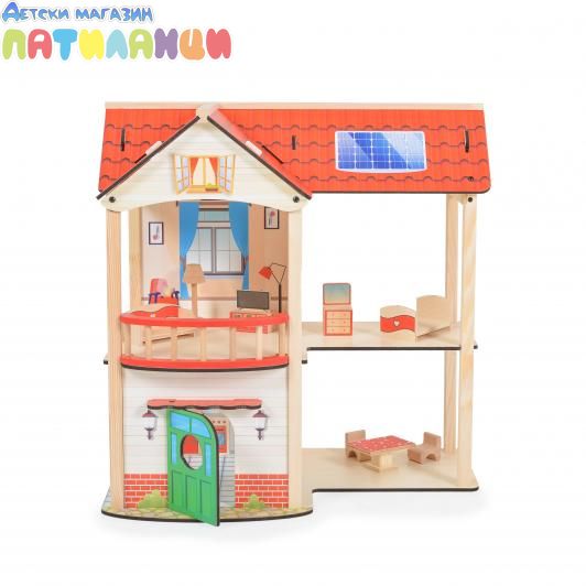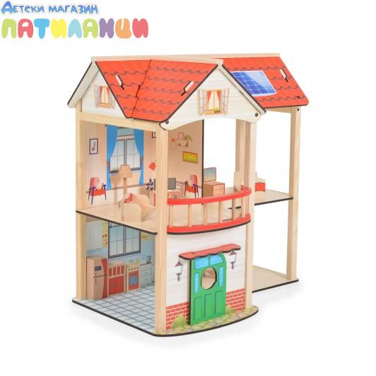 Дървена къща за кукли с обзавеждане ELLY Moni Toys