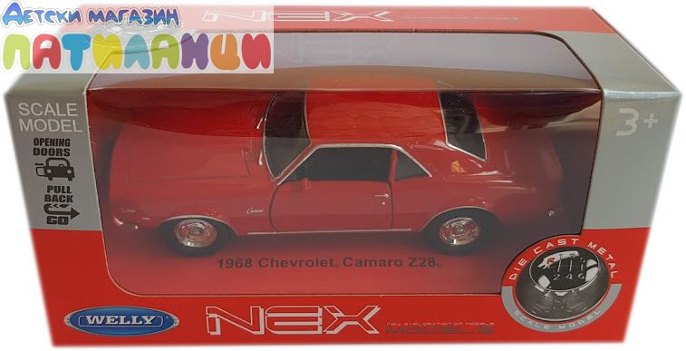 Метална кола Chevrolet Camaro Z28 1968 Welly 1:34 Welly е един от водещите производители на метални умалени модели от 1979 г. насам.