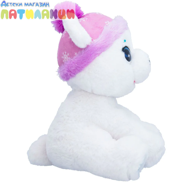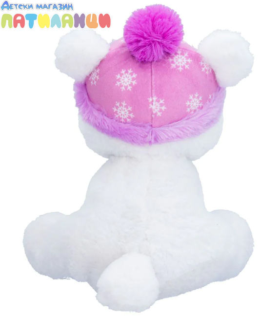 Включва бляскави детайли, кристални очи и мека шапка.