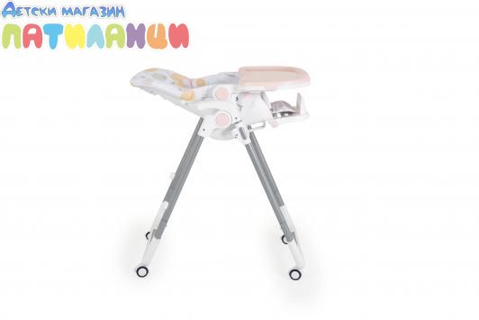 Поставката за крачета има 3 ъгъла за избор. 5-точковата система за безопасност с регулируеми колани и таблата за хранене с 3 позиции ви позволяват да създадете комфорт на детето.