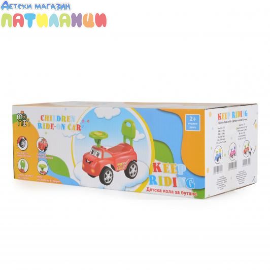 Детската пластмасова кола за яздене е с дизайн, който допринася за развитието на моториката и баланса на детето.