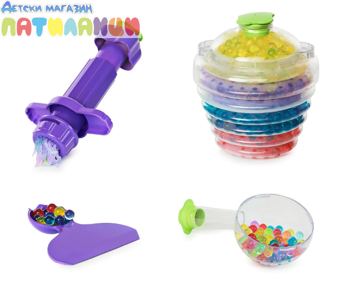 Използвай 6-те инструмента, за да търкаляш, хвърляш, изстрелваш, мачкаш, мелиш и оформяш Orbeez – има толкова много начини за игра. Използвай комплекта за игра с тях и за съхранение, без бъркотия!