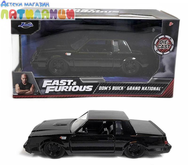 Метален автомобил Fast & Furious Dom's Buick Grand National Jada Toys - 1/32 . Jada Toys, Inc. е американски производител на колекционерски модели под формата на леярски модели , фигурки и радиоуправляеми превозни средства. Основана е през 1999 г. от Джак и Мей Ли.Продуктите на Jada са насочени предимно към колекционерския пазар и са достъпни и популярни в търговските обекти по целия свят.