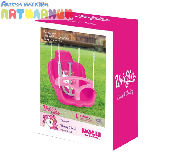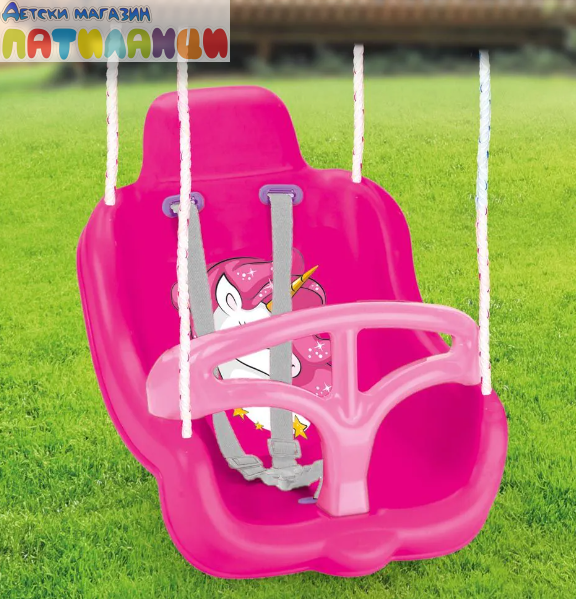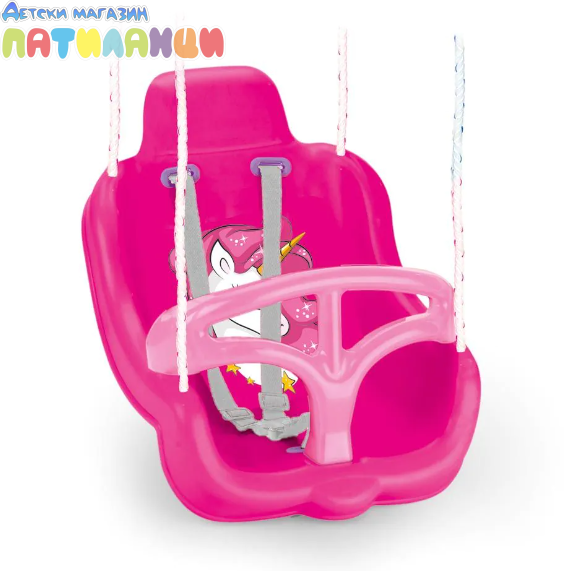 Дизайнът с очарователен Unicorn мотив привлича вниманието на децата и превръща люлеенето в истинско приключение. Люлката е изработена от висококачествена и устойчива пластмаса, безопасна за деца, и осигурява удобна седалка за комфорт по време на игра.