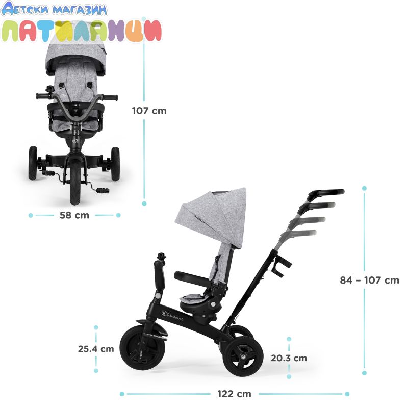 Регулиране на родителската дръжка: 4 позиции, 84-107 cm