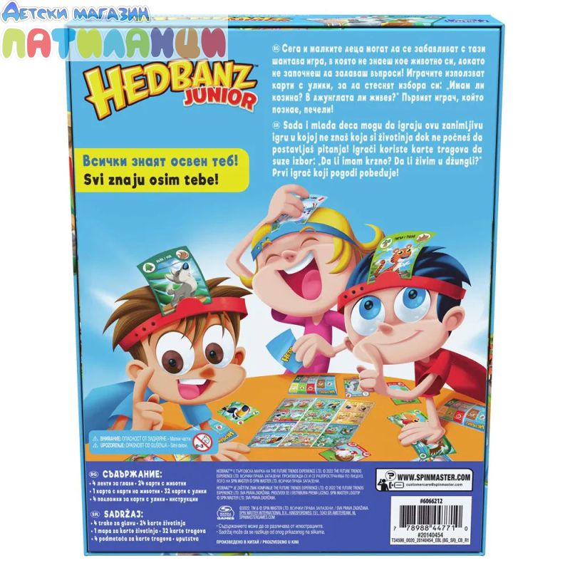 Headbanz Junior е настолна игра със забавни и лесни правила. Целта на играта е да познаеш какво животно е изобразено на картата на челото ти. Няма как да разбереш какво си, докато не започнеш да задаваш въпроси на другите играчи. Със сигурност ще ти е забавно да питаш: „Имам ли пера?“ или „Имам ли козина?“ Изключително лесни правила за игра, а забавните ситуации я правят интересна както за възрастни, така и за деца.